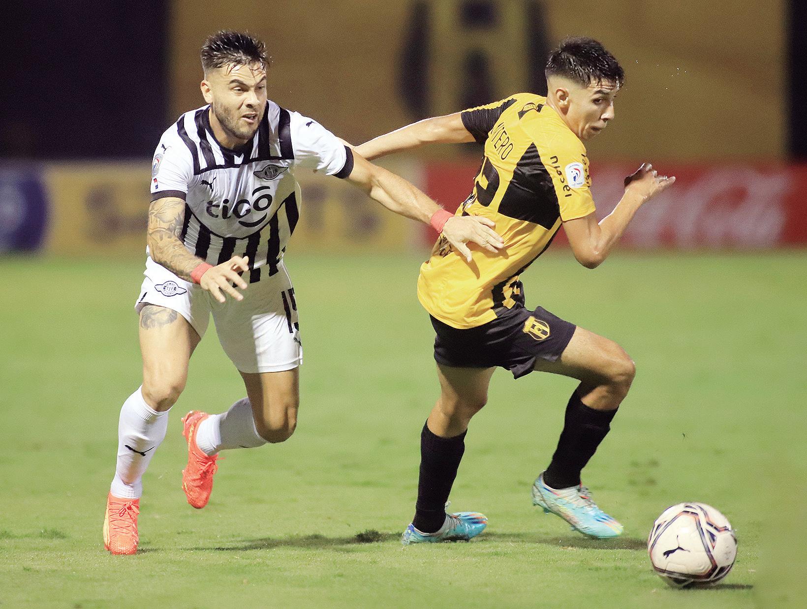 Héctor Villalba intenta abrirse el camino en un partido muy peleado entre Guaraní y Libertad.