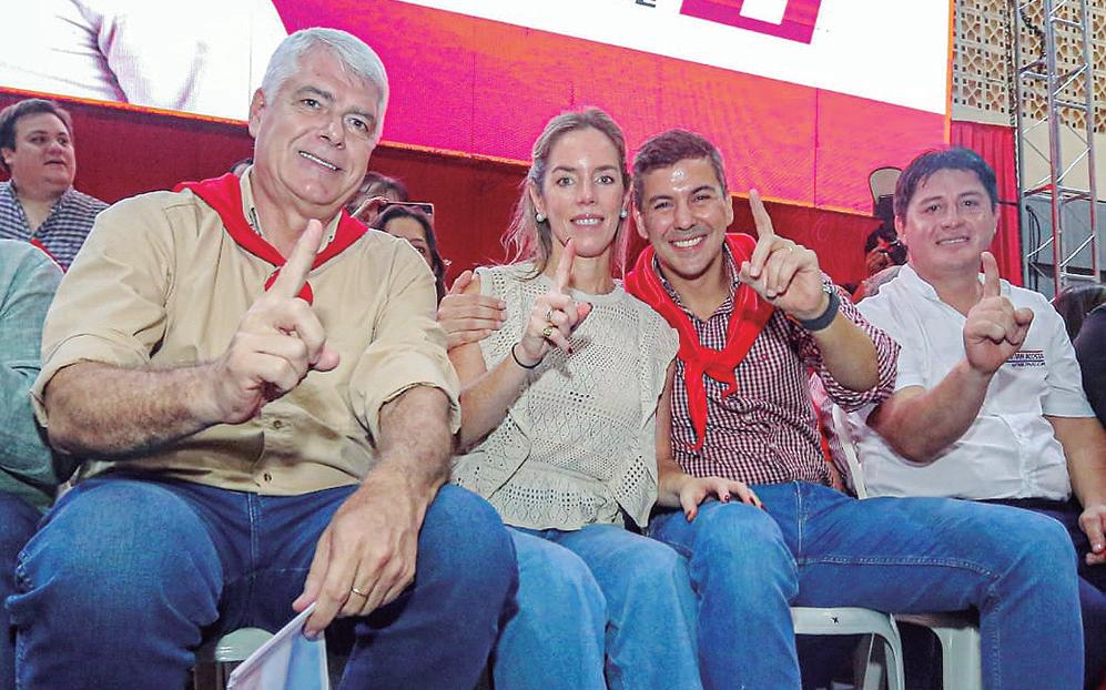 El candidato a la Presidencia estuvo acompañado de su esposa Leticia Ocampos, Arnoldo Wiens, el aspirante a la gobernación de Caazapá Christian Acosta y otros líderes del Partido Colorado.