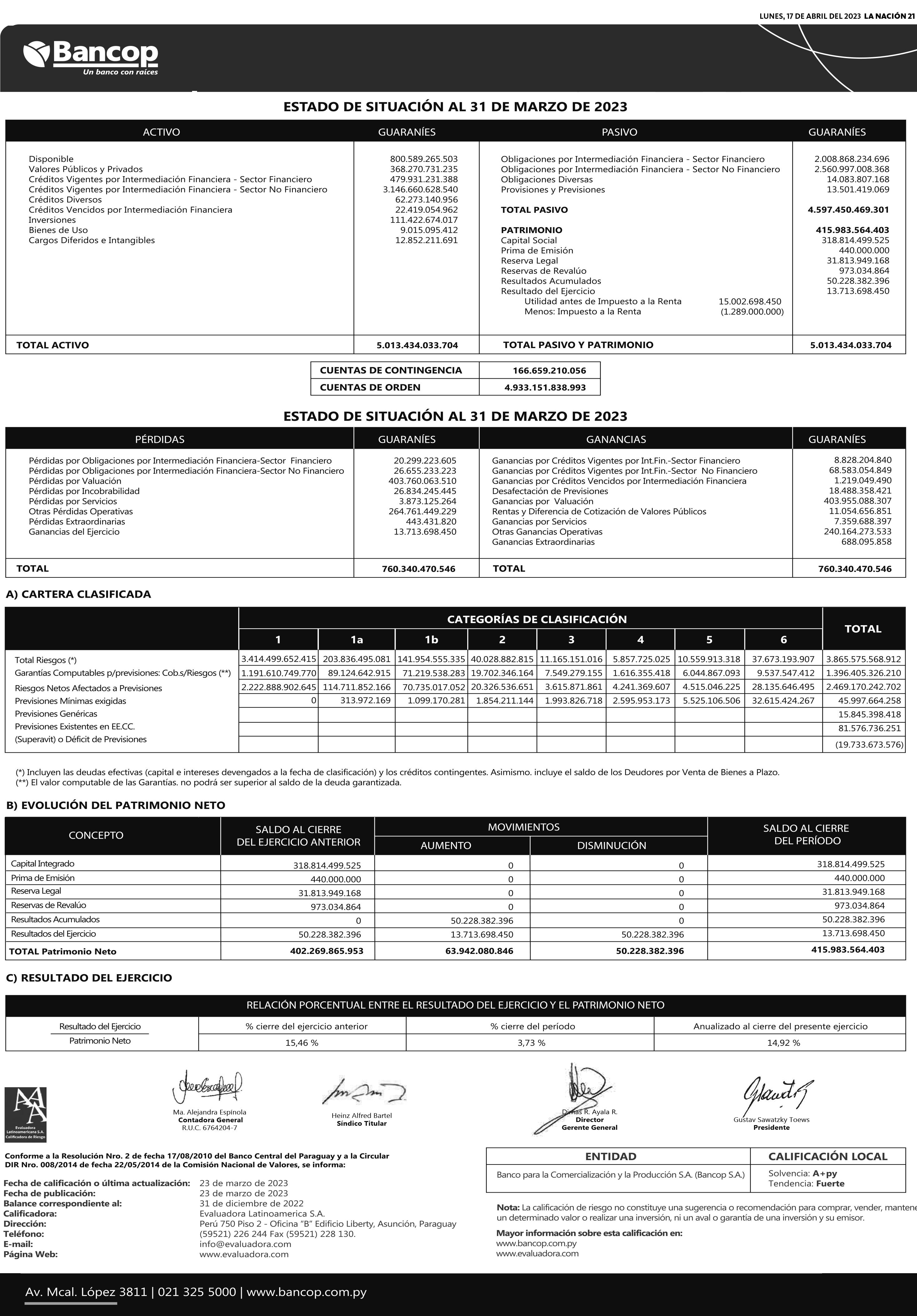 LUNES 17 DE ABRIL DEL 2023 PARAGUAY AÑO 28 • Nº 10.135 G. 6.000