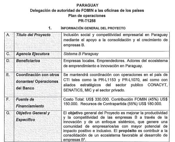 Con US$ 330 mil crearon ONG Sistema B, una parte puso el BID y aparecen otros donantes y aliados estratégicos: Conacyt, Senatics, MIC.
