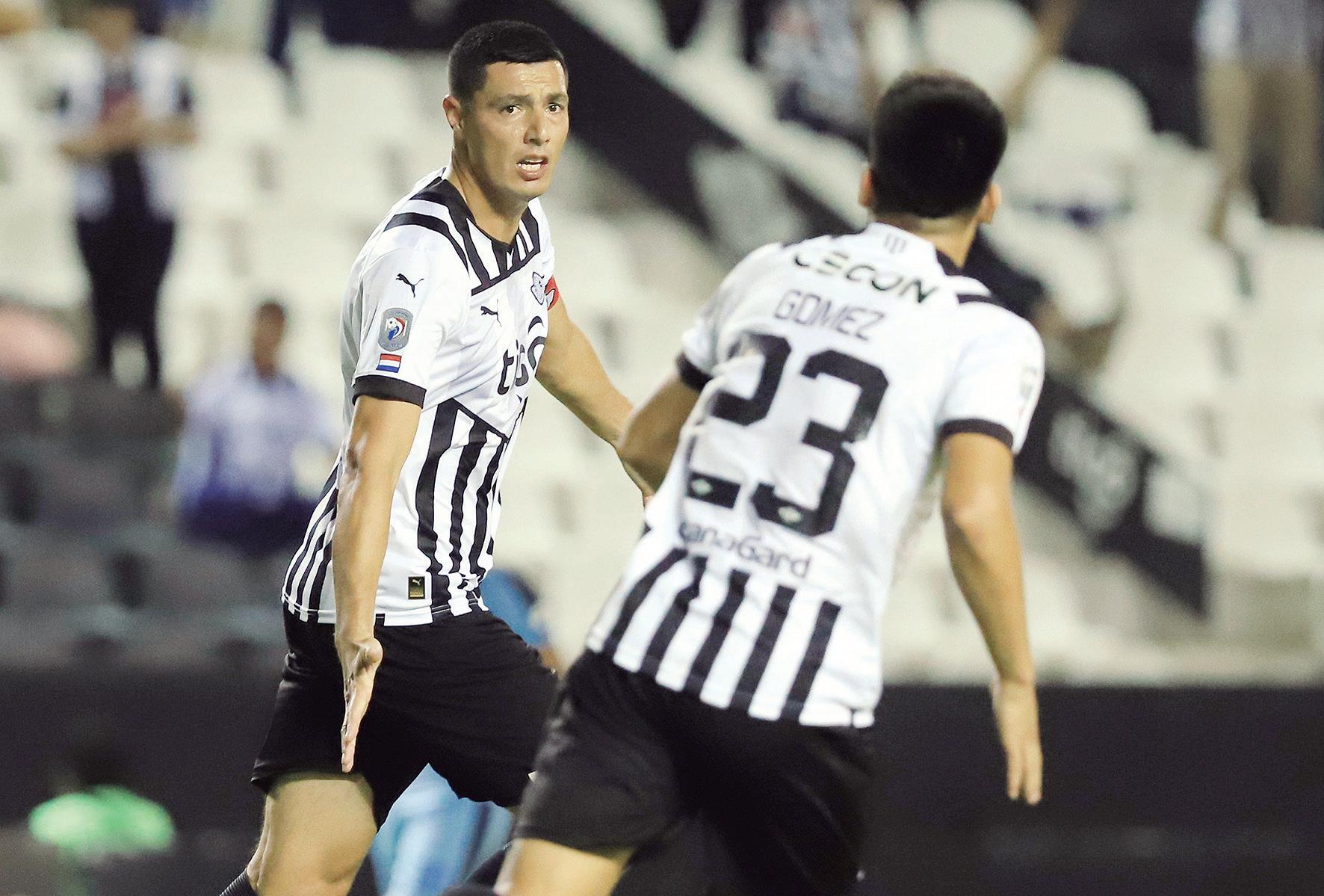 Óscar Cardozo festeja su conquista, se asocia a su alegría Diego Gómez, otro que rindió alto en el Gumarelo.