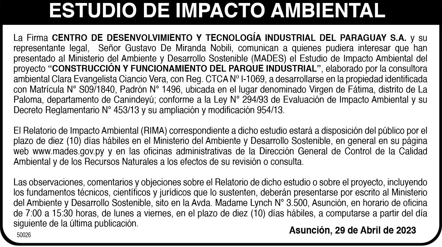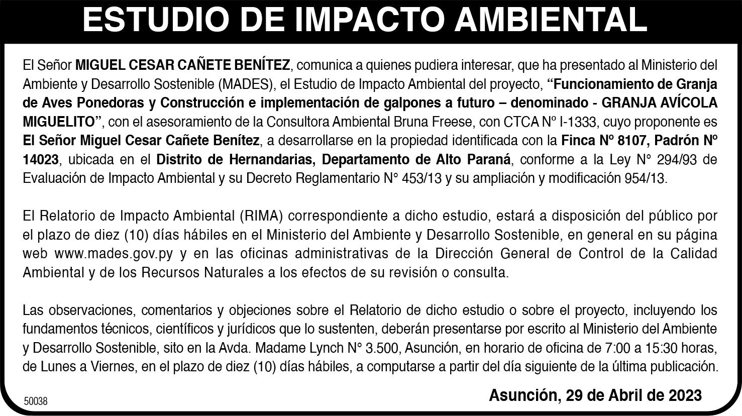 VIANO OSCAR BRÍTEZ CACERES”. Fdo. de la Mora, 21 de abril de 2023. Abog. Álvaro Bueno –Actuario Judicial.- 49665/05/05.-