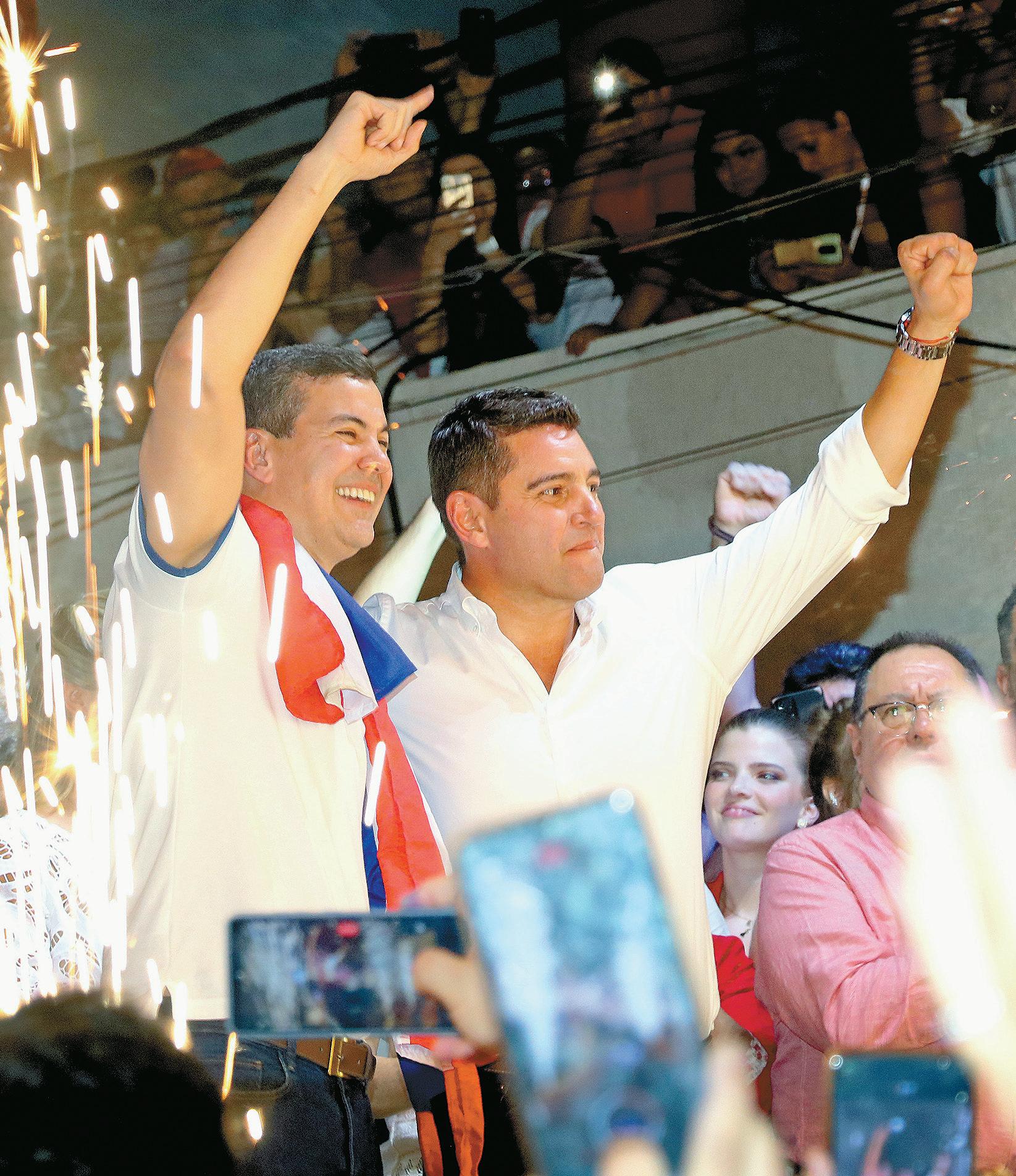Tras una jornada electoral con gran participación ciudadana, los resultados oficiales del Tribunal Superior de Justicia Electoral confirmaron ayer la amplia victoria de la dupla presidencial del Partido Colorado, Santiago Peña-Pedro Alliana. Una multitud se congregó en horas de la noche frente al local de la ANR para celebrar el contundente triunfo. P. 2 A 7