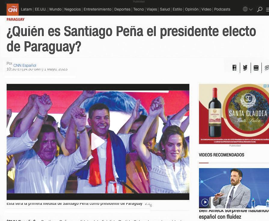 Al respecto, prestigiosos medios internacionales se hicieron eco de los resultados electorales en Paraguay. “Santiago Peña es economista y, según su perfil publicado en web oficial, cuenta con un máster en Administración Pública de la Universidad de Columbia. Ocupó el cargo de ministro
