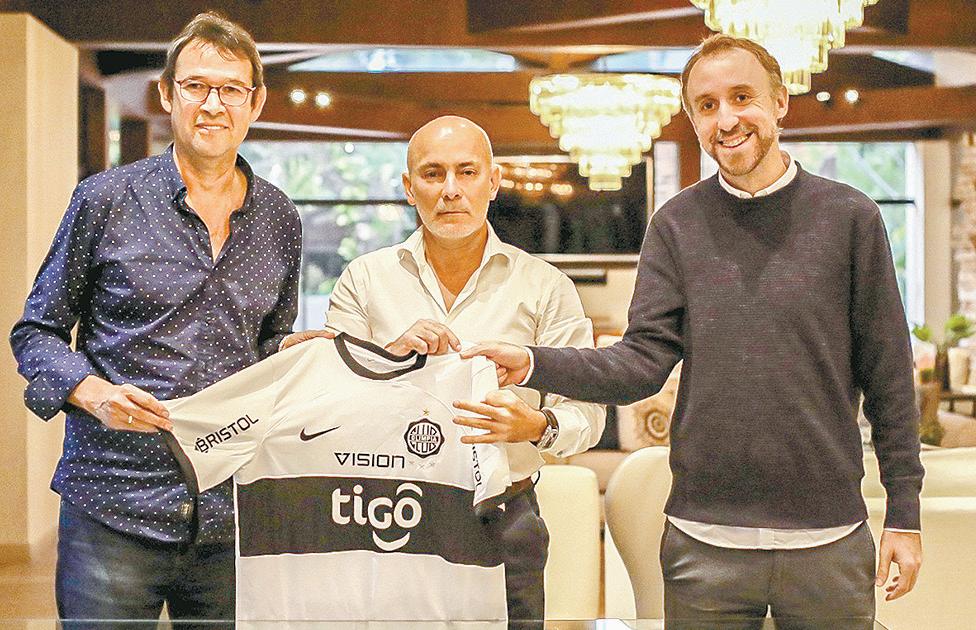 Raúl Vicente Amarilla durante su presentación junto al presidente Miguel Cardona y el director deportivo Carlos Aitor García