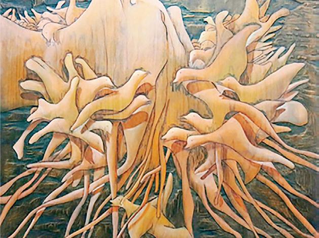 La muestra incluye trabajos de los primeros tiempos hasta la última creación del maestro Carlos Colombino destacando el rigor de la composición y el análisis del lenguaje, además de una labor que también registra su experiencia personal y social, su compromiso con el otro y sus inquietudes humanas a través de obras desafiantes y contestatarias. P.35 A 37