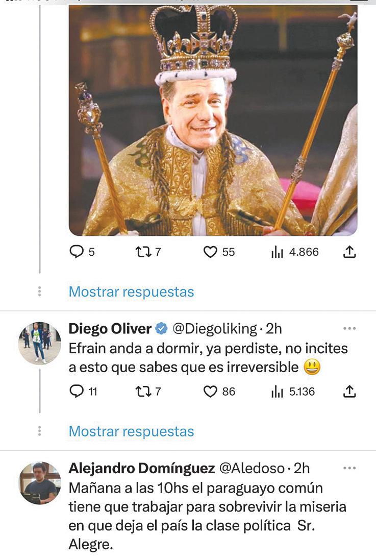 Efraín Alegre ha pasado a constituirse en uno de los más importantes perdedores seriales de la historia de las elecciones paraguayas, y como si no fuera suficiente, ahora se ha vuelto un pararrayos de las burlas de los ciudadanos en las redes sociales tras cada intervención suya. Esta vez está convocando para hoy a una reunión que en realidad ya está convocando el TSJE, en un desesperado intento por huir de la enorme crítica en el partido al que ha arrastrado a tres derrotas nacionales consecu-
