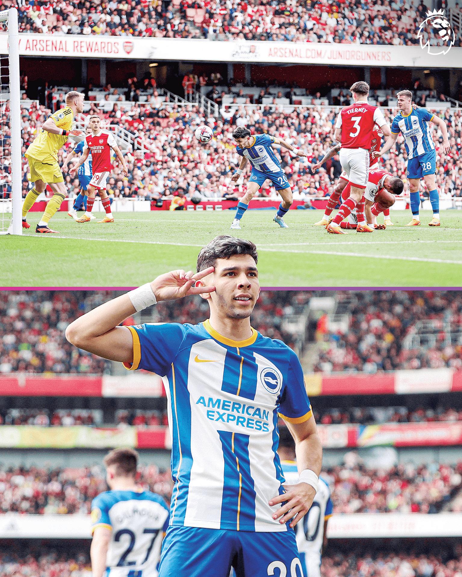 El futbolista paraguayo Julio Enciso tuvo otra jornada de gloria en la Premier League anotando un gol para el Brighton en la goleada de 3 a 0 sobre el poderoso Arsenal, que pelea el campeonato con el Manchester City. Enciso abrió el camino en la segunda mitad con un golpe de cabeza tras un centro de Estupiñán. Jugó hasta el minuto 82 y se retiró con algunas molestias tras un fuerte golpe. P. 32