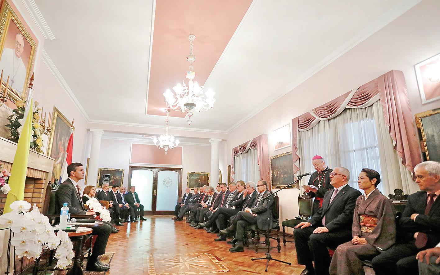 El presidente electo, Santiago Peña, participó de un encuentro con el cuerpo diplomático acreditado en Paraguay en la sede de la Nunciatura Apostólica en Asunción. Resaltaron que se debe aprovechar este momento de diálogo sincero para tratar sobre los planes del mandatario electo, que apuntan a defender los intereses nacionales así como el desarrollo de las potencialidades del país. P. 5