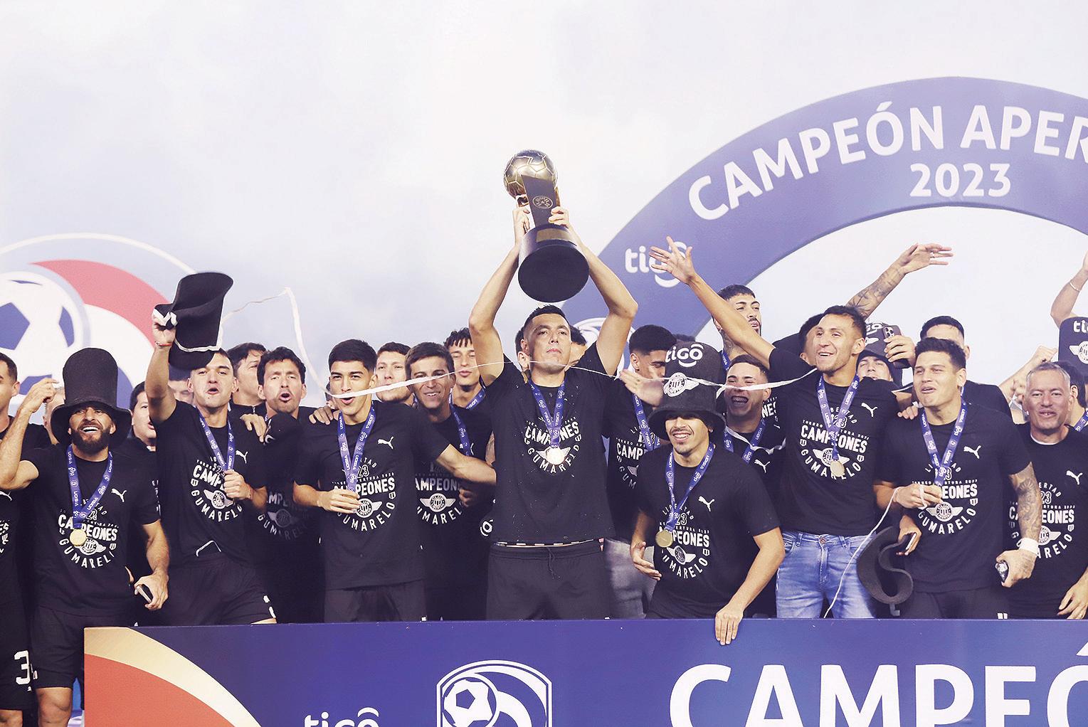 Óscar “Tacuara” Cardozo, el símbolo de Libertad, levanta la copa de campeón del torneo Apertura