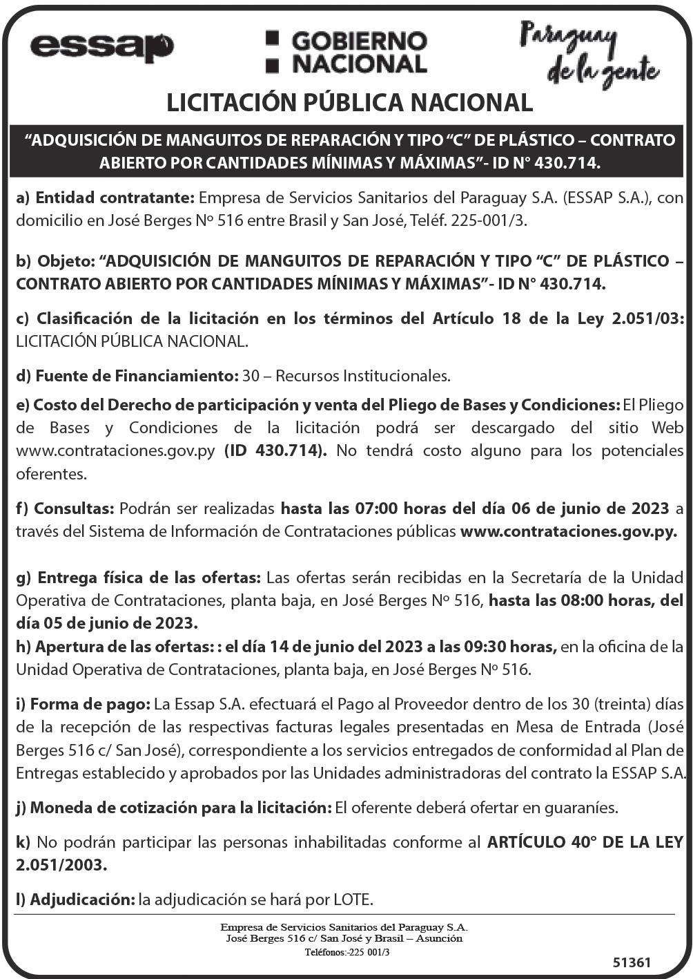 En cumplimiento al Artículo 1 de la Ley N° 2593/05 que modifica el Artículo 23