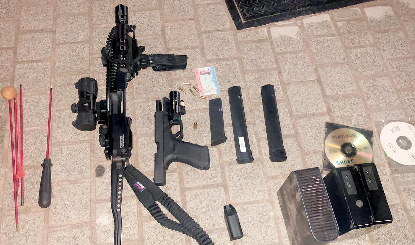 comunicación, dron, varios documentos, botellas de aguas, chalecos antibalas, fusil de asalto, varios cargadores.
