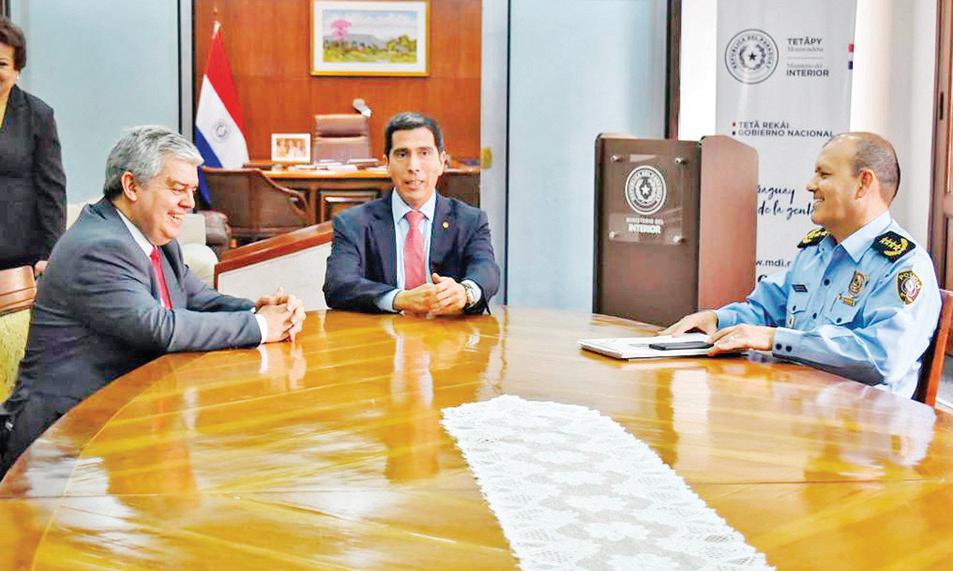 El ministro del Interior, Federico González, mantuvo una reunión con el próximo titular de la cartera de Estado, Enrique Riera, y el comandante de la Policía Nacional, Gilberto Fleitas. En contacto con La Nación/ Nación Media, explicó que se busca desarrollar un proceso de transición ordenado y transparente, elaborando constantes trabajos en compañía del secretario de Estado designado para que pueda articular de una manera rápida sus contribuciones para la seguridad interna del país, una vez asumido el cargo.