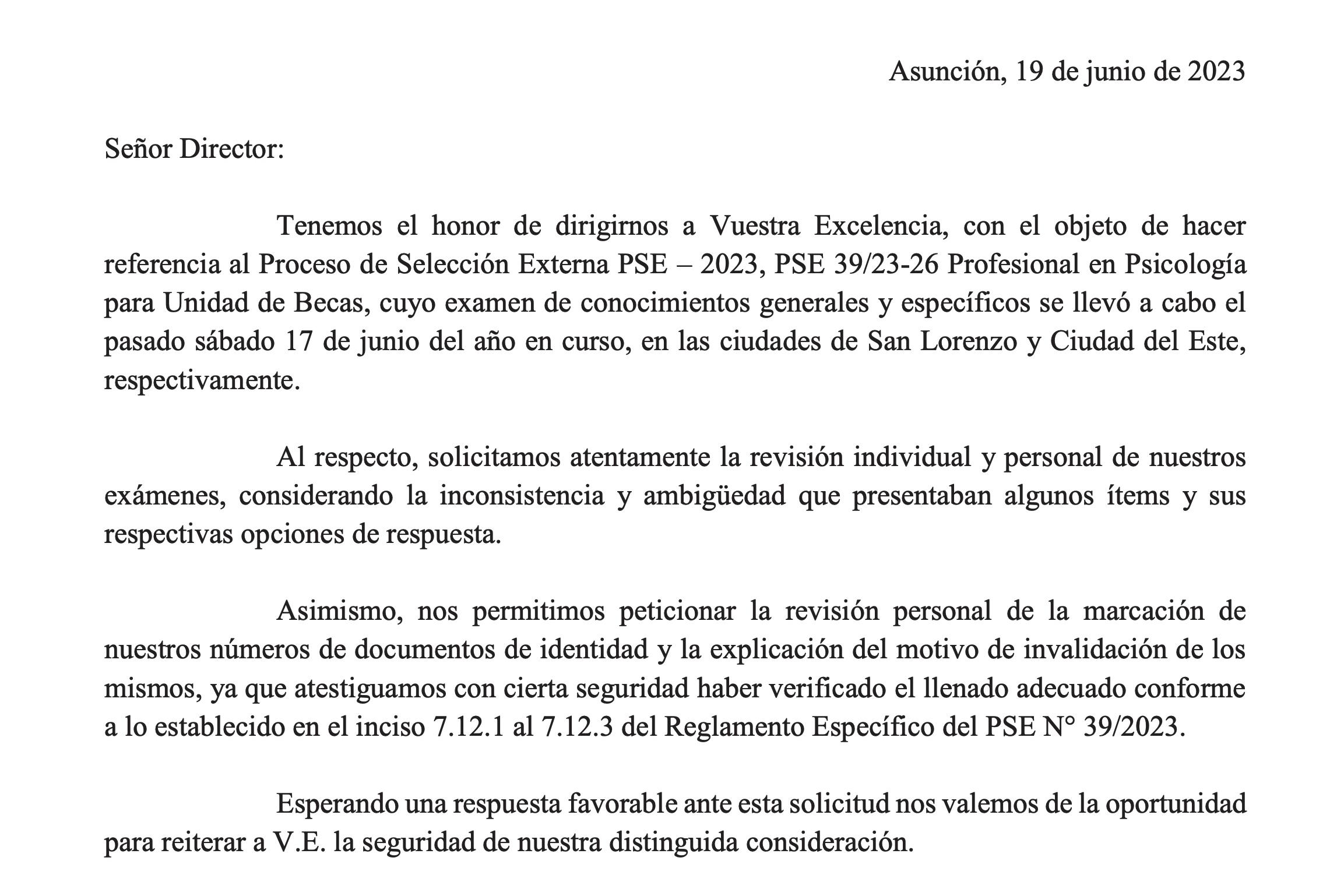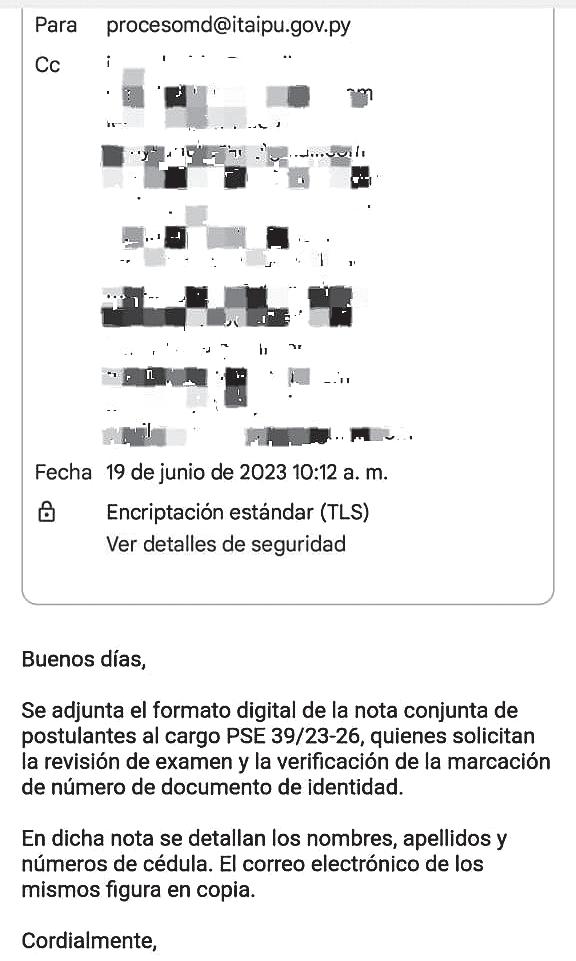 a Itaipú firmado por 15 aspirantes con exámenes anulados sin explicación