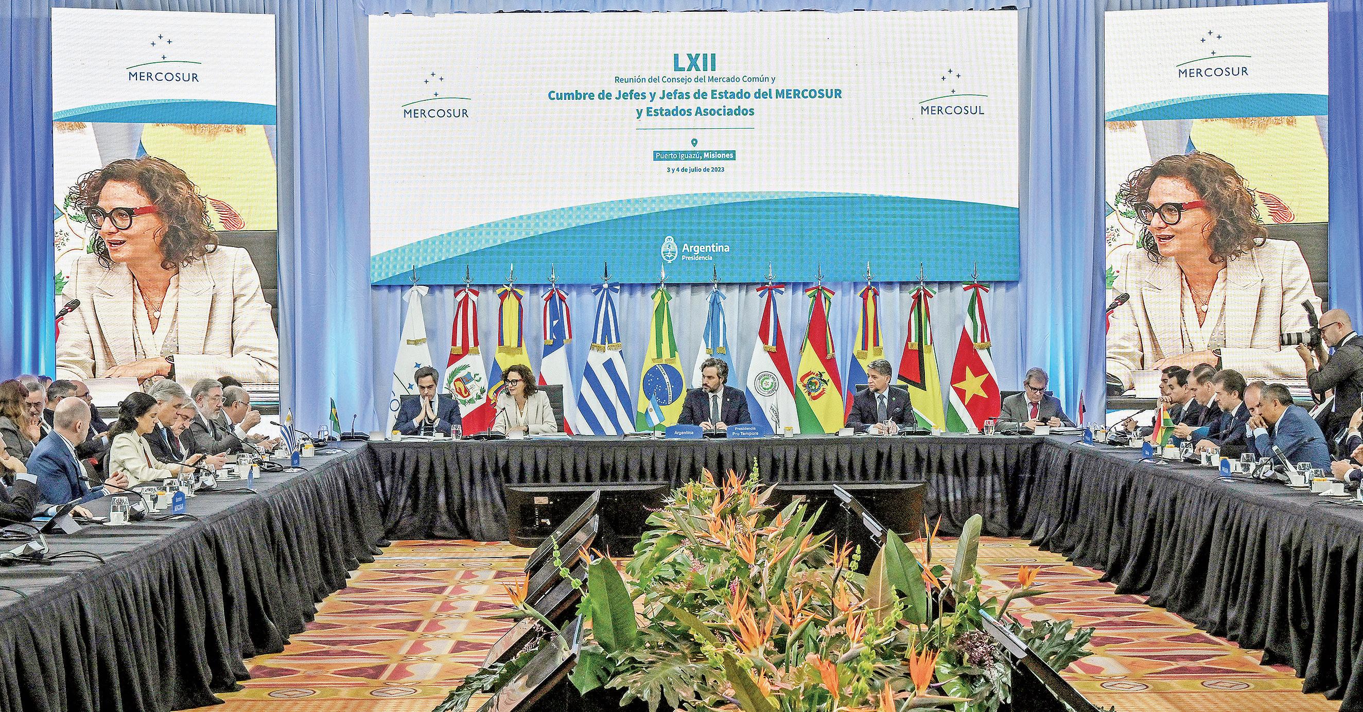 El Mercosur se reúne desde ayer en la ciudad de Puerto Iguazú, Argentina, con la presencia de todos los presidentes de los países miembros. El actual canciller nacional, Julio Arriola, y el designado para el próximo gobierno, Rubén Ramírez, ya participaron de una reunión previa a la cumbre de mandatarios. Hoy se suma el presidente electo, Santiago Peña. P. 6