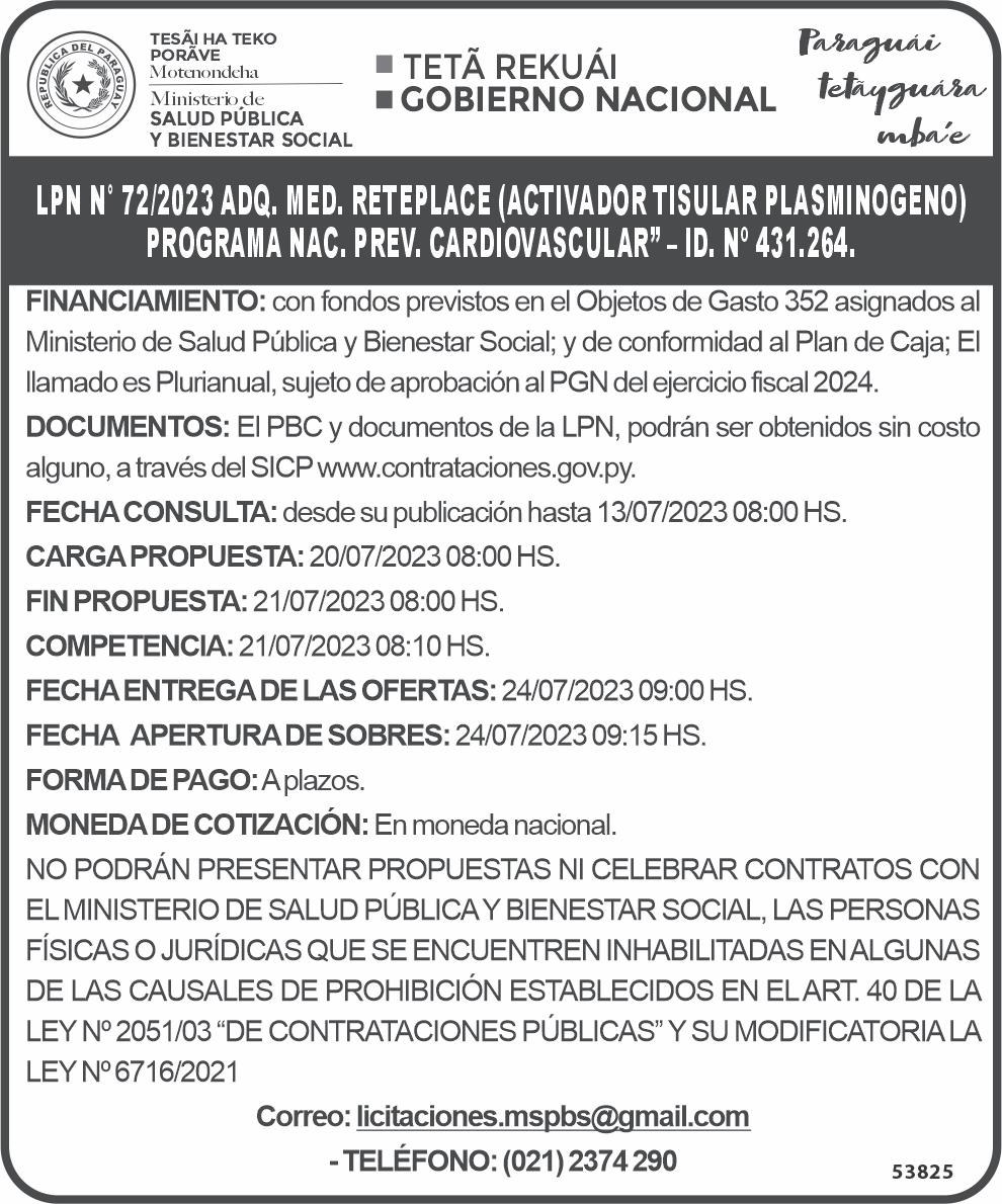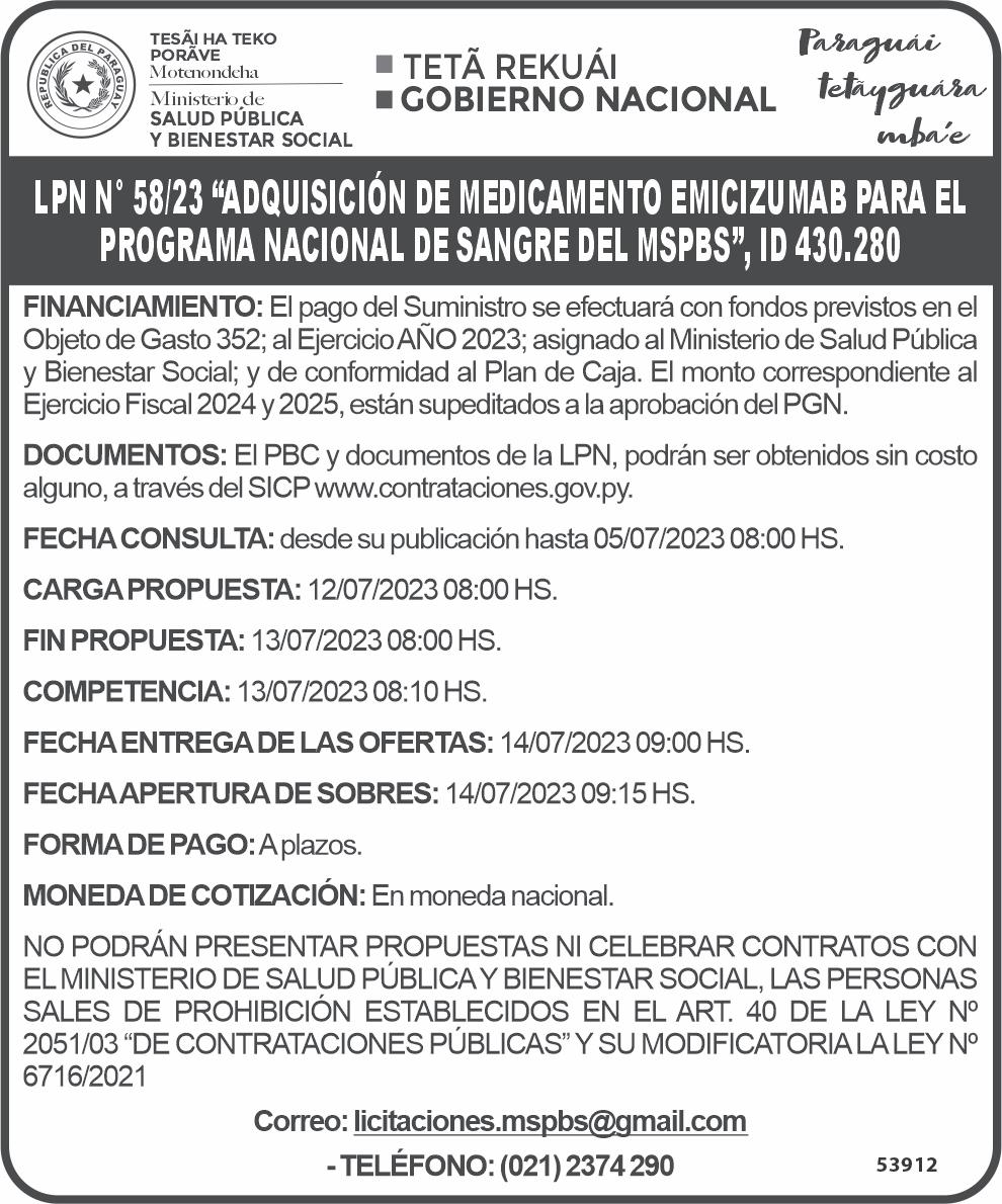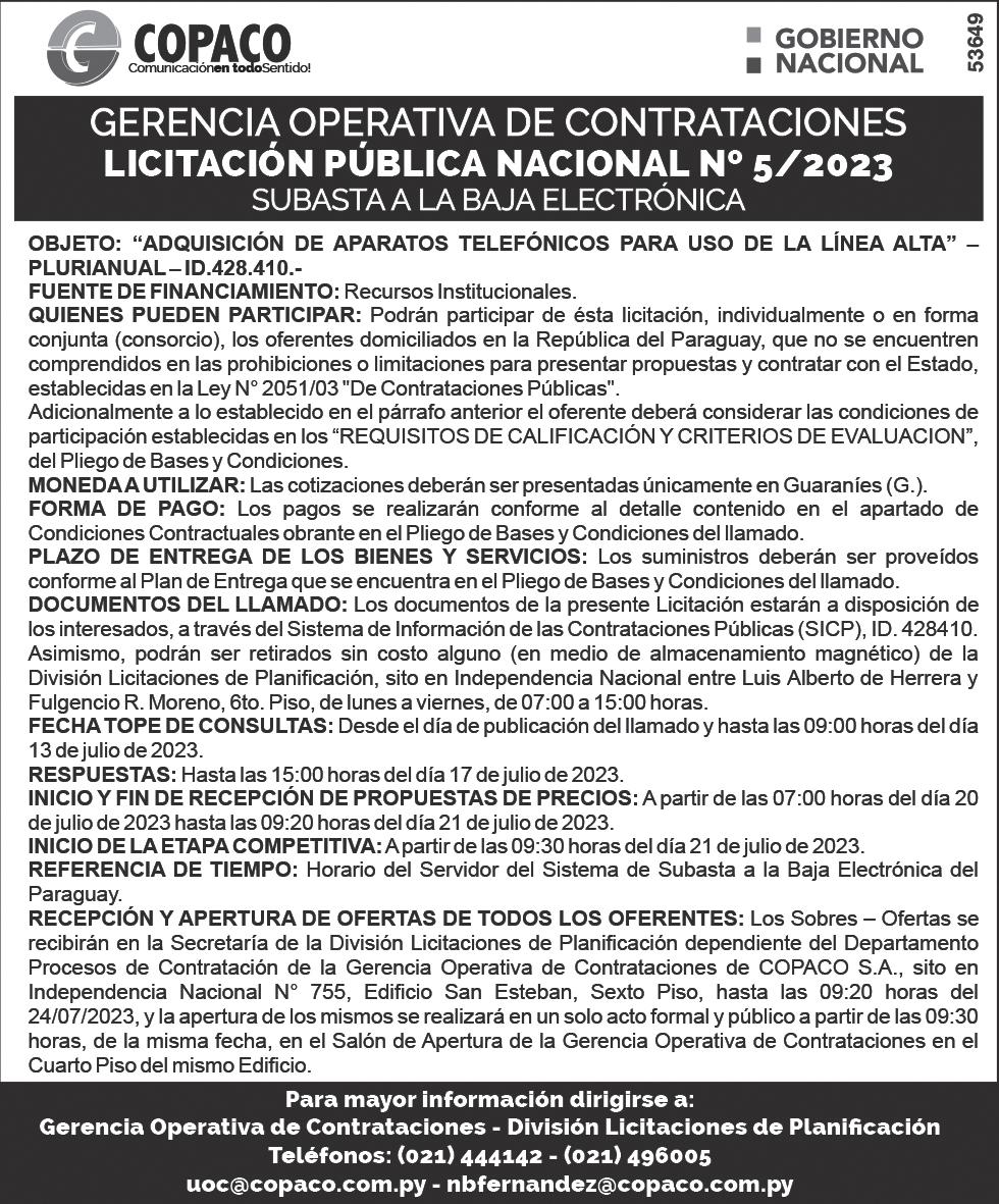De acuerdo con lo publicado en la Dirección Nacional de Contrataciones Públicas, esta empresa se presentó a finales del 2021 al llamado hecho por la Seprelad y, siendo la única oferente en ese proceso, fue adjudicada por la suma de G. 803.000.000 para ofrecer el servicio.