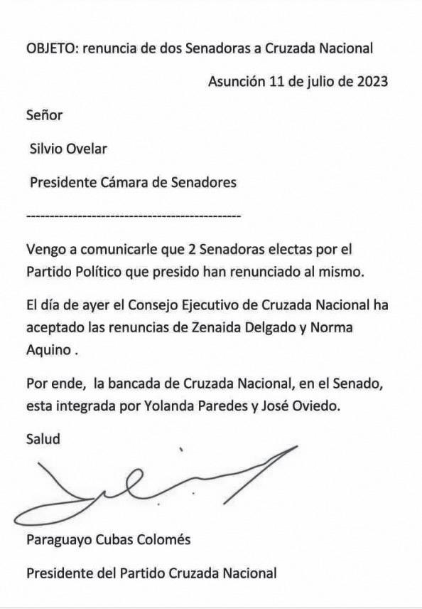 Cruzada Nacional se desmembra: dos senadoras, fuera del partido P. 7