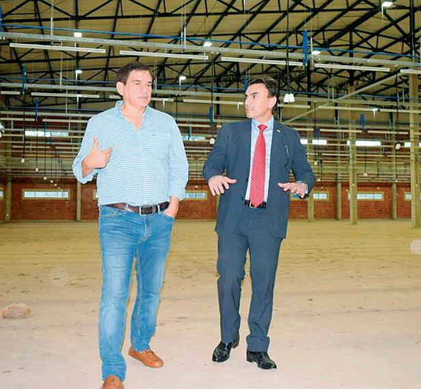 El futuro ministro de Urbanismo, Vivienda y Hábitat, Juan Carlos Baruja, y Carlos Pereira, titular saliente de la cartera, veri caron el edi cio donde se instalará una fábrica textil en el barrio San Francisco, en Zevallos Cué, que dará empleo a 300 pobladores de la zona. “Estamos buscando reactivar el proyecto”, señaló Baruja. P. 5