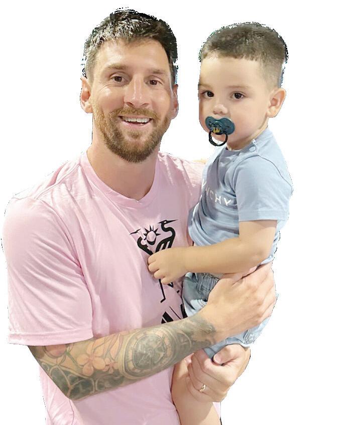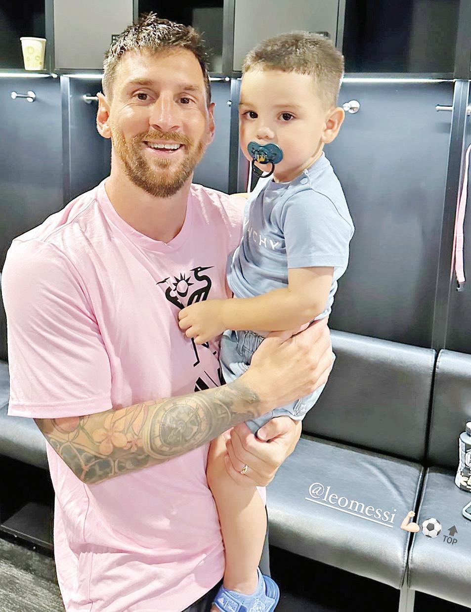 Francesco, de 2 años, se tomó la foto para el recuerdo con el crack argentino.