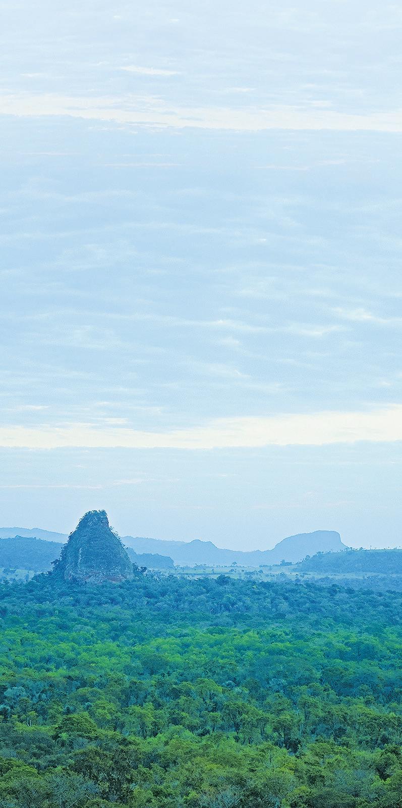 El Parque Nacional Cerro Corá, ubicado en el departamento de Amambay, es una de las joyas del noreste del país. Se destaca por un imponente verde que decora un impecable paisaje natural, que además reviste un enorme valor histórico al haber sido escenario de la última batalla de la guerra contra la Triple Alianza. P.32-33