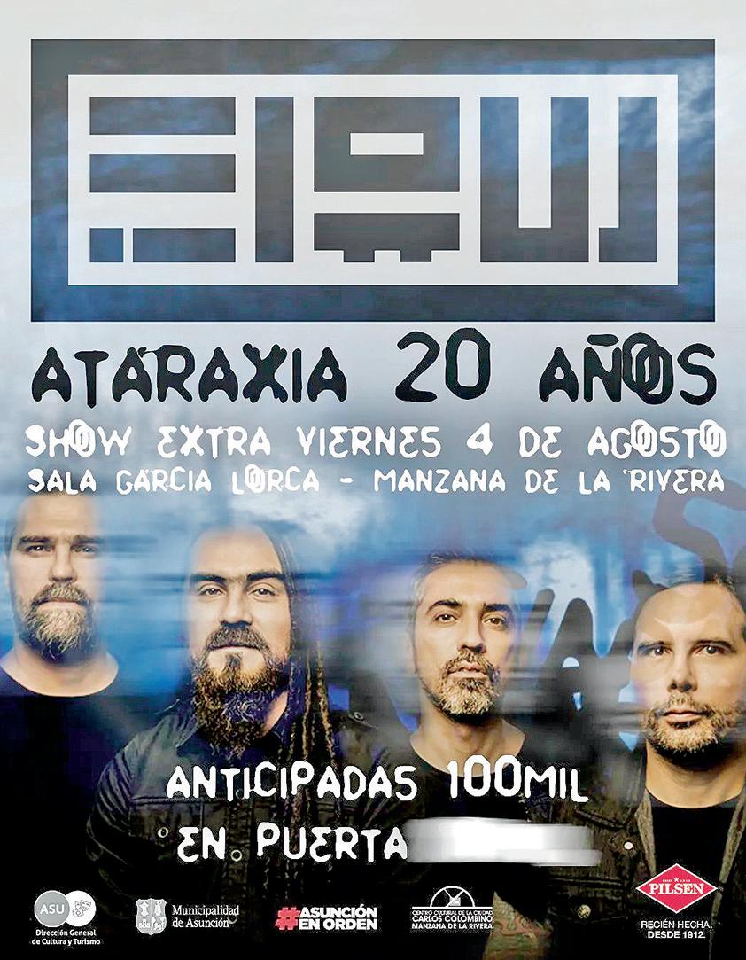 La banda nacional Flou se prepara para la celebración de los 20 años del lanzamiento de “Ataraxia”, su disco debut, con dos shows en la sala Federico García Lorca de la Manzana de la Rivera el 4 y 5 de agosto con una de las fechas agotadas. El recorrido de ese show abarcará todas las canciones de ese álbum y clásicos de la banda. Los cuatro miembros del grupo –Walter, Bruno, Fede y Guille– recordaron anécdotas de aquella época en este diálogo con La Nación/ Nación Media. P. 25 A 27