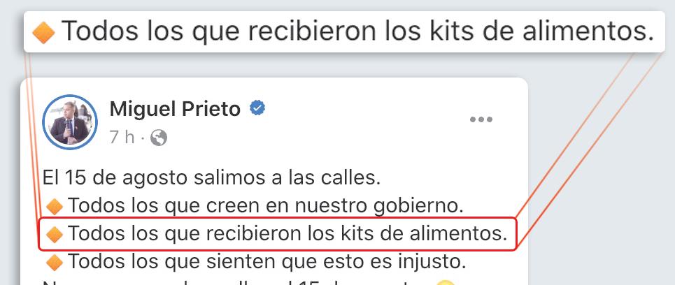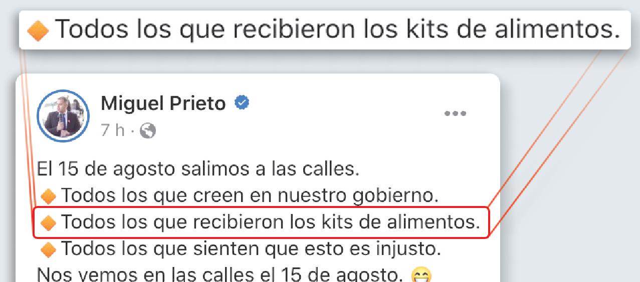 Tras su imputación por lesión de con anza, luego de hallarse indicios de un negociado en la adquisición de kits de alimentos en pandemia, el intendente de Ciudad del Este, Miguel Prieto, convocó a los bene ciarios de los víveres a movilizarse en su apoyo, en un abierto acto de chantaje. El Ministerio Público constató varias irregularidades en la compra de los kits, hallando proveedores cticios y hasta presumibles productos de contrabando. P. 5