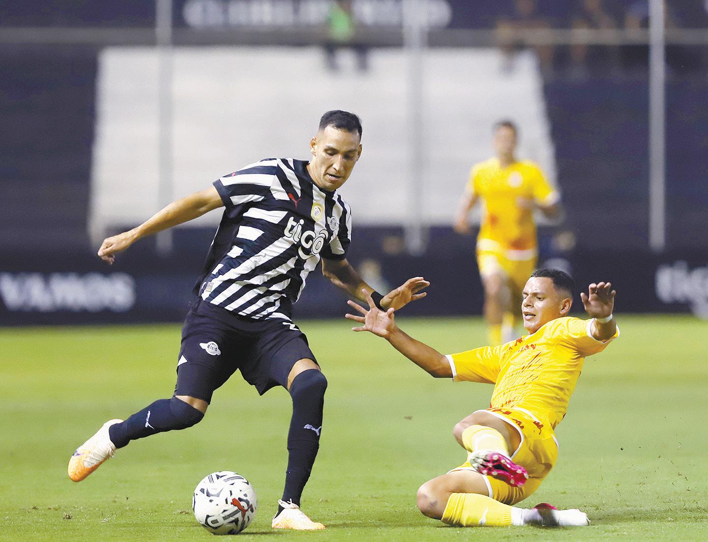 Marcelo Fernández, que fue el jugador más influyente de Libertad, intenta prosperar con la pelota. El Gumarelo cedió sus primeros puntos en el Clausura
