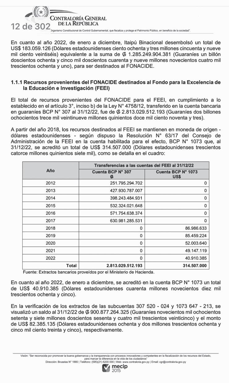 En el informe de la Contraloría se detallan las irregularidades cometidas en el manejo de los recursos del Fonacide