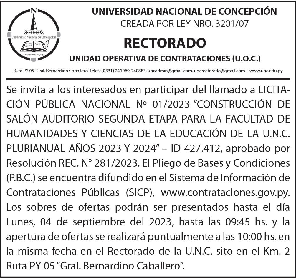 cial conforme Acordada 1335/2019 de la CSJ. Asunción, 8 de agosto de 2023.-55359/20/08.-