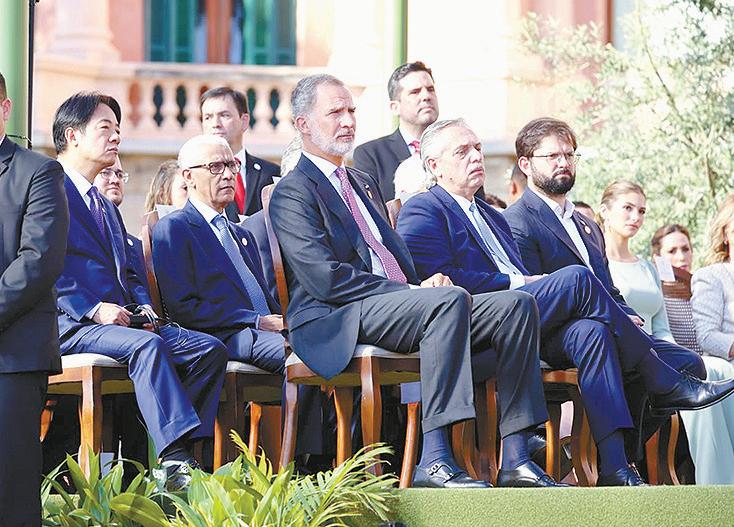 delegaciones extranjeras. En medio de la celebración, el mandatario alzó su copa y brindó por la democracia y la amistad entre naciones.
