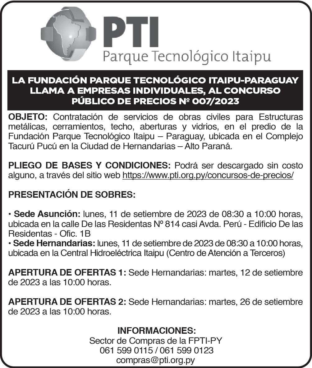 MIÉRCOLES 16 DE AGOSTO DE 2023 PARAGUAY AÑO 29 · Nº 10.256 G. 6.000 EURO 8.080 8.300 COTIZACIONES COMPRA VENTA DÓLAR CHEQ. 7.240 7.280 PESO ARG. 10 15 DÓLAR EFEC. 7.250 7.310 REAL 1.430 1.500