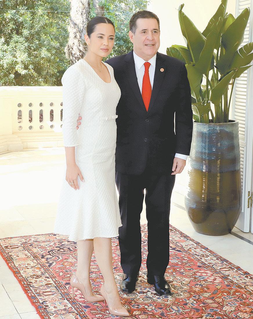 Santiago Peña junto a Paola Ferrari, basquetbolista de la selección paraguaya femenina