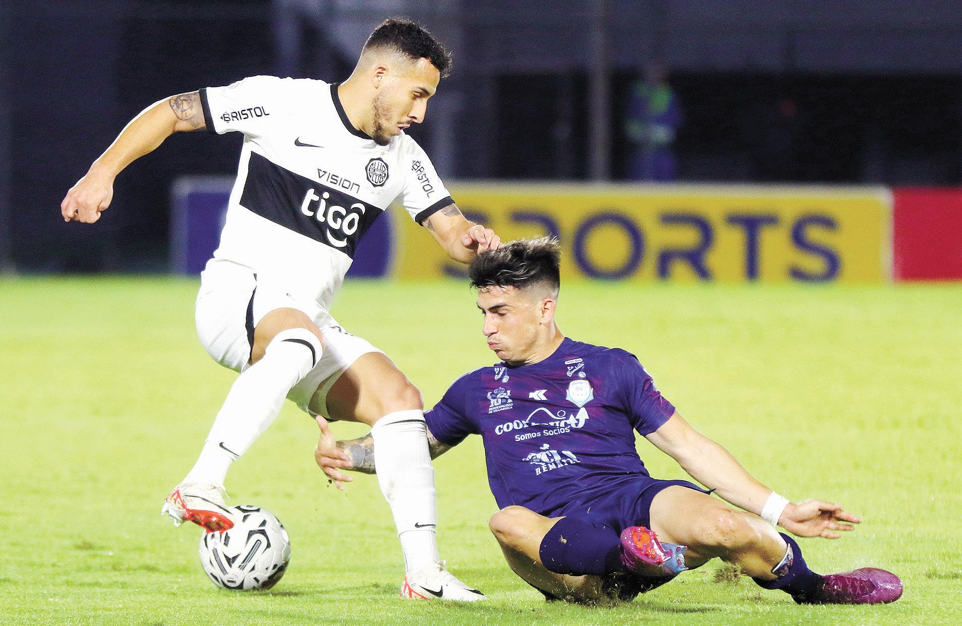 En un ataque profundo, el jugador de Olimpia Fernando Cardozo intenta eludir a un defensor rival Hubo entusiasmo, pero faltó precisión y mejor puntería.