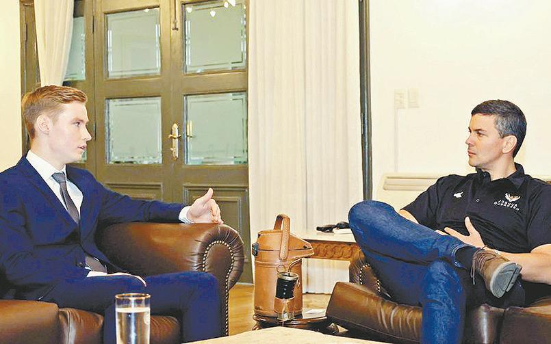 Siguiendo en la línea de interés sobre el reposicionamiento del deporte paraguayo, Peña también recibió la visita del joven piloto de carreras de la Fórmula 3 Joshua Duerksen con quien conversó sobre la importancia