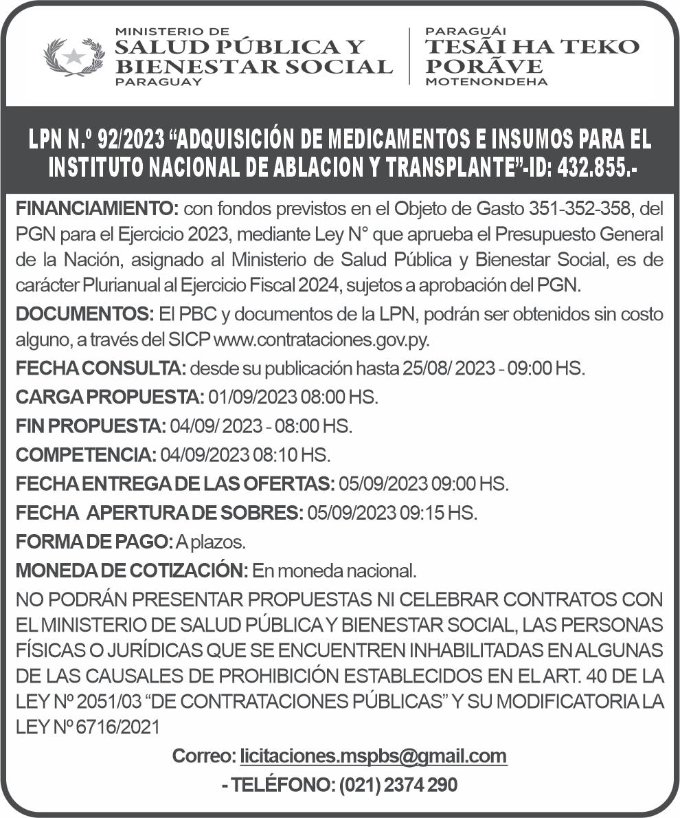 semana, y falta mucho más por revisar, más de 1.500 millones de dólares. En Salud, más de 370 millones, de la nada; IPS, 210 millones de dólares; Ministerio del Interior y Policía Nacional, 250 millones de dólares; SEN, 5 millones; en Petropar