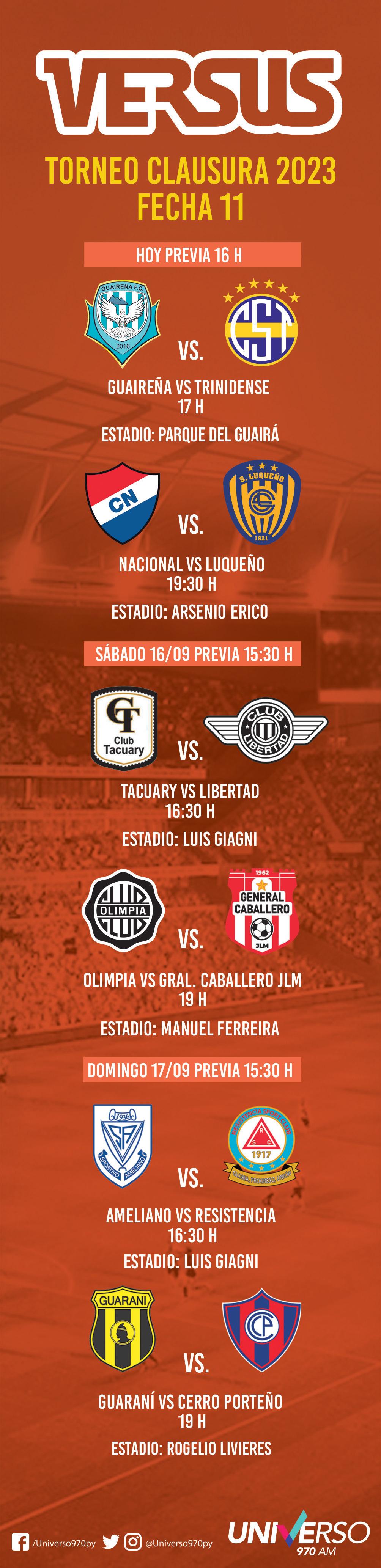 Nacional vs. Luqueño Arsenio Erico/19:30. Árbitro: José Méndez. MAÑANA