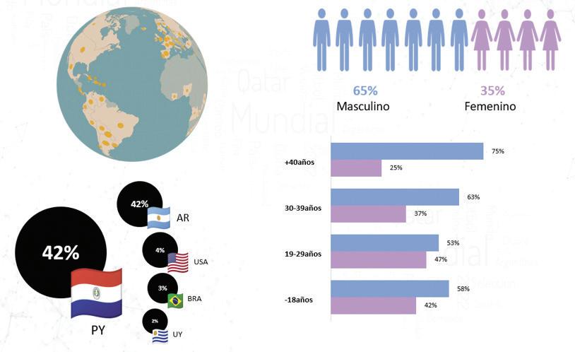 La distribución geográfica de las publicaciones alrededor de este tema concentra el 84 % de las mismas en Paraguay y Argentina, aunque pueden verse repercusiones en varios países del mundo. Finalmente, del análisis surge también que son los varones quienes más han hablado del tema en las redes.