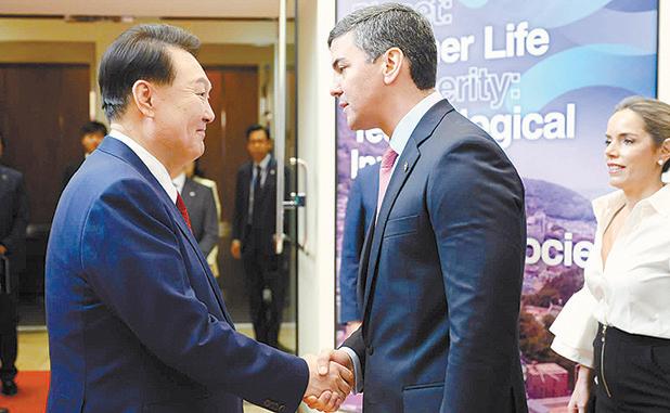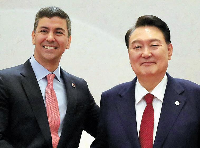 El mandatario paraguayo y su par salvadoreño celebraron un encuentro en que acordaron profundizar relaciones entre ambos países El presidente de la República, Santiago Peña, junto a Yoon Suk-yeol, presidente de la República de Corea del Sur