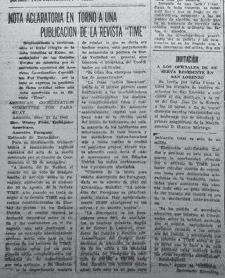 En un momento en que Asunción no contaba aún con un cuerpo de bomberos, un gran incendio se adueñó de las principales páginas interiores de los periódicos en setiembre de 1943 cuando el mundo entero se debatía en una guerra total y que se encontraba en pleno apogeo. P. 33