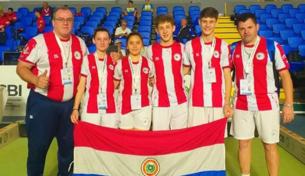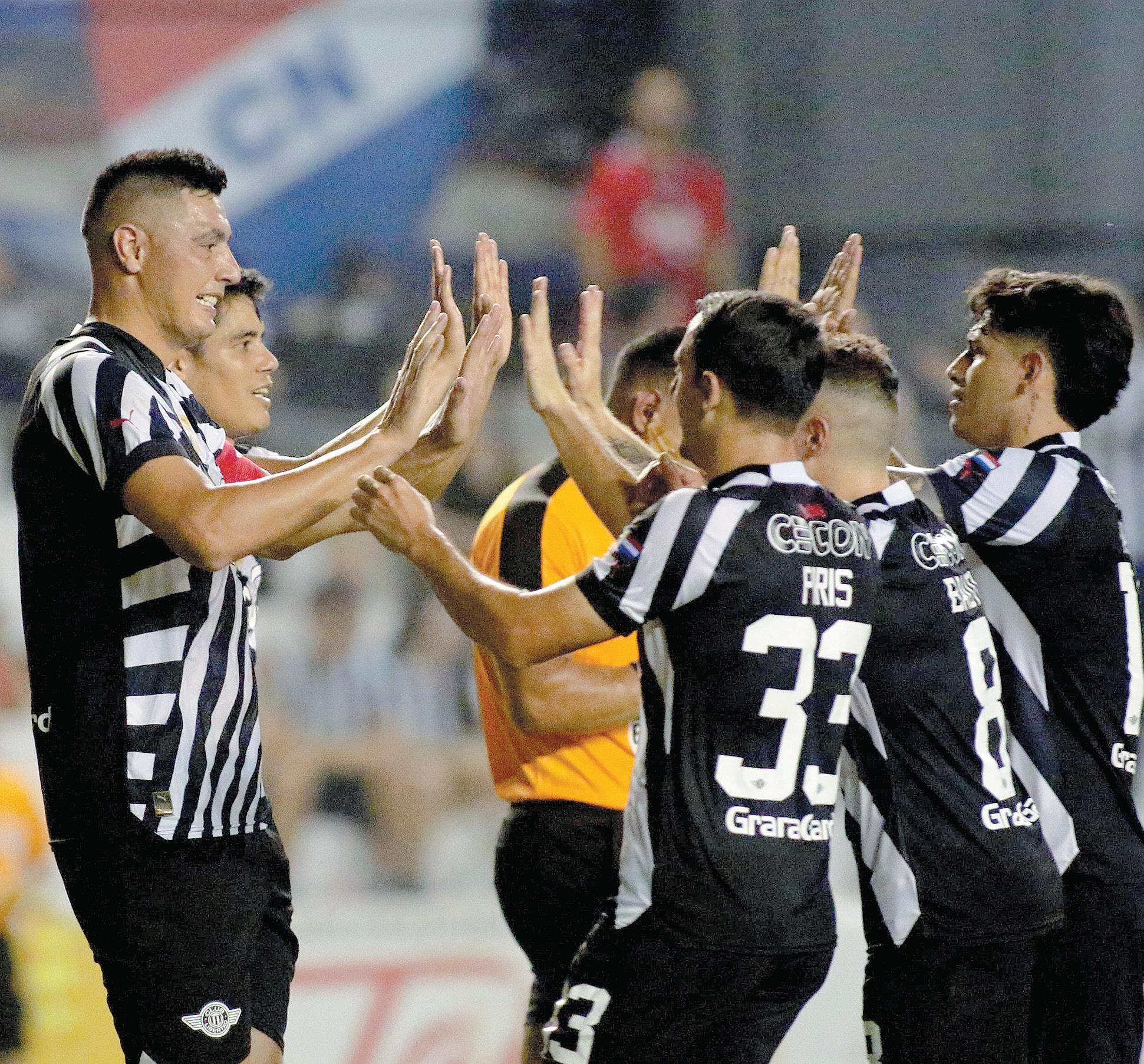 Cardozo marcó el segundo gol y lo festeja con Melgarejo, Piris, Merlini y Espinoza