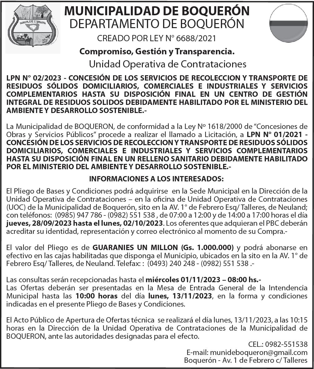San Juan Nepomuceno, 7 de setiembre de 2023. Abg. Rossana Heddy Luz Mendoza, Actuaria Judicial. -57377/02 / 10.-