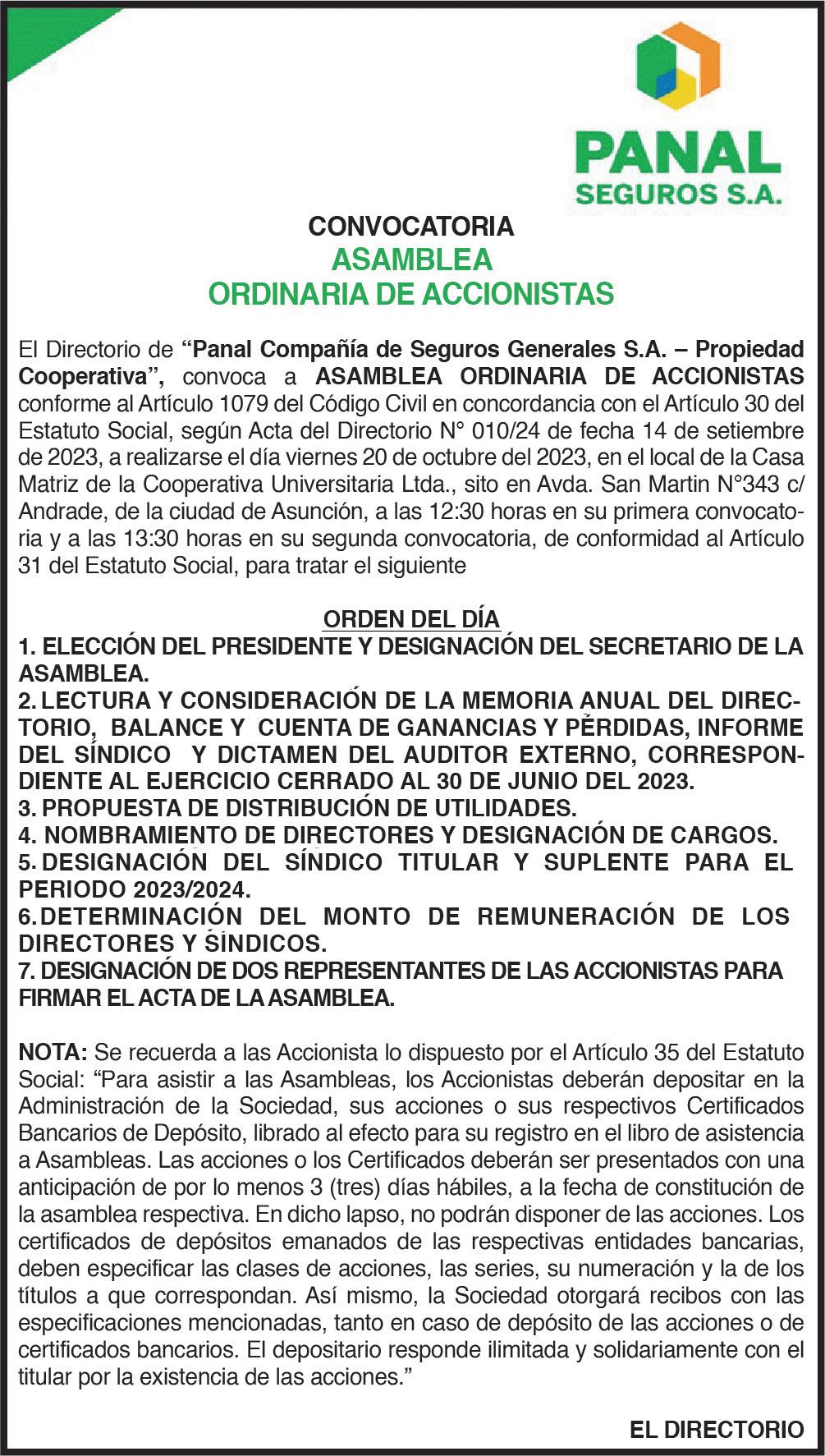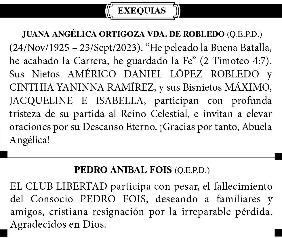 SUCESIÓN. El Juez de Paz Multifuero del distrito de Dr. Juan León Mallorquín, ABOG. HECTOR PASTOR IBARRA GONZÁLEZ, conforme a la Ley 6059/2018, cita y emplaza por sesenta (60) días a herederos y acreedores de la sucesión del señor PEDRO ALONSO JARA. Dr. Juan León Mallorquín, 22 de setiembre de 2023. Abg. Roberto Trinidad Escobar (Actuario Judicial).-57358/02/10.SUCESIÓN. La Jueza de Paz en lo Civil y Comercial de la Ciudad de San Antonio, Dra. Olga María Caballero de Romero, cita y emplaza por sesenta días a herederos y acreedores de la sucesión de RAFAEL NUÑEZ CARDOZO S/ SUCESIÓN. San Antonio, 22 de setiembre de 2023. Alejandra Ayala Melgarejo, Actuaria Judicial. -57409/02/10.-