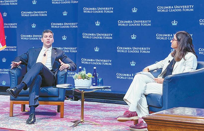 Santiago Peña mencionó el proyecto de ley sobre los créditos del carbono, durante su exposición en la Universidad de Columbia en los Estados Unidos