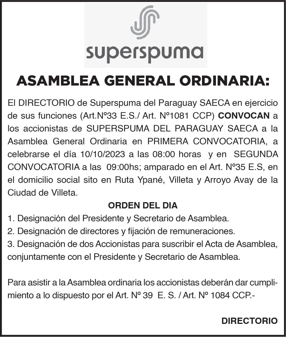 EREKO S. A. Por Esc. Pub. Nº250 del 07/08/2023 pasada ante la Notaria Pública Mónica Beatriz Roussillon, fue transcripto y protocolizado el Acta de Asamblea General Ordinaria de Accionistas Nº 4 de fecha 19/06/2023 de la firma “EREKO” SOCIEDAD ANONIMA, e inscripta en la Dirección General de los Registros Públicos, Sección Personas Jurídicas y Comercio, Matrícula Jurídica Nº 791, Serie “SUACE”, inscripto bajo el Nº 2, Folio 19, en fecha 22/08/2023 –Reingreso en fecha 06/09/2023.Inscripto de conformidad a la Acordada CSJ Nº 1539/21 DTR Nº 4/21. -57371/ 25/09.-