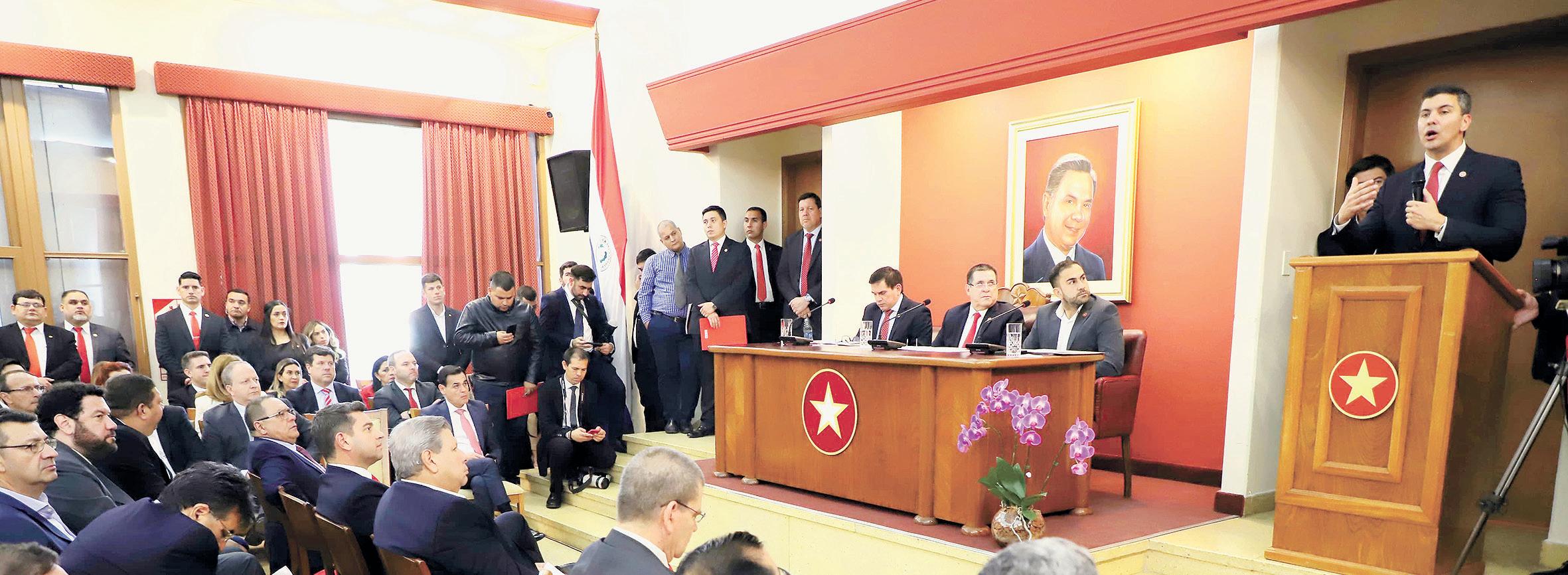 Tras la presentación realizada por el presidente de la República, Santiago Peña, de su programa de gobierno, con presencia de los ministros de su gabinete y los miembros de la Junta de Gobierno, en una sesión extraordinaria, la Asociación Nacional Republicana (ANR) resolvió res-