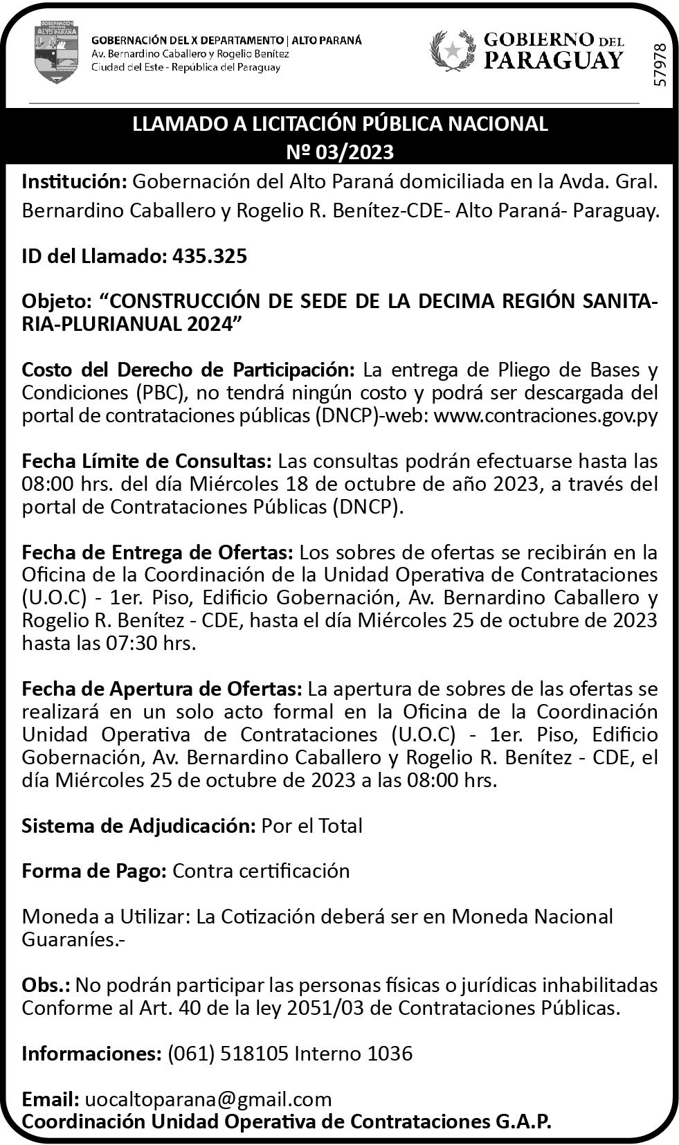 hecho, se da cumplimiento al mandato del presidente de la República, Santiago Peña, quien había encomendado recuperar lo que es de todos los paraguayos. “El ministro de Defensa vendría a llevar la llave e iría al lugar para las verificaciones”, anunció el procurador en una conferencia de prensa realizada esta mañana.