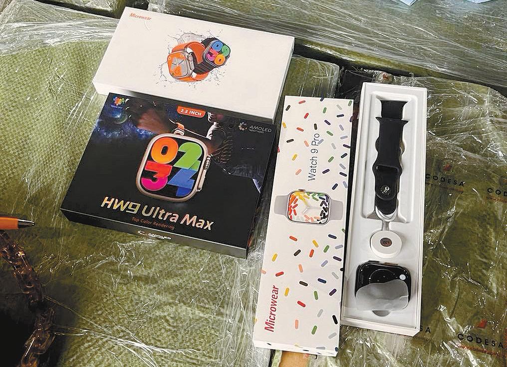 Durante la intervención se logró la incautación de 10 500 unidades de relojes inteligentes de un contenedor.GENTILEZA GENTILEZA