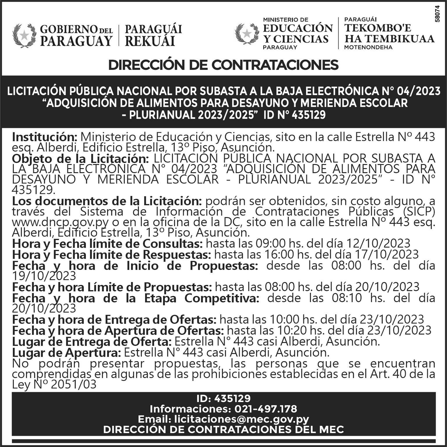 SUCESIÓN. La Jueza de Primera Instancia en lo Civil y Comercial del Décimo Turno de la Capital, Secretaría Nº 20, Abg. Rocío González Morel, cita y emplaza por 60 días a los herederos y acreedores de la sucesión del señor PORFIRIO IGNACIO SALDIVAR VILLALBA. Fdo. Abg. TOBIAS REDEKOP HARDER. Se hace saber al destinatario de este edicto que el mismo cuenta con el Código QR, por lo cual, para tener certeza de que este documento es válido, deberá utilizar el lector del Código QR, siendo ya en consecuencia, innecesaria la autenticación manual del Actuario del Juzgado conforme Acordada 1335/2019 de la Corte Suprema de Justicia. ASUNCIÓN, 26 de setiembre de 2023.-57745/12/10.SUCESIÓN. El Juez de Paz en lo Civil y Comercial de Lambaré, Dr. José Segundo Velázquez Alfonso, cita y emplaza por sesenta días a herederos de la sucesión de PEDRO BENITEZ S/ SUCESIÓN. Lambaré, 28 de setiembre de 2023. Abg. Hugo Molinas Duré, Actuario Judicial.-57791/12/10.-