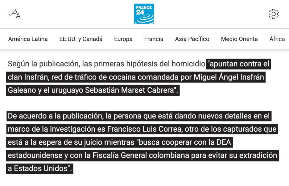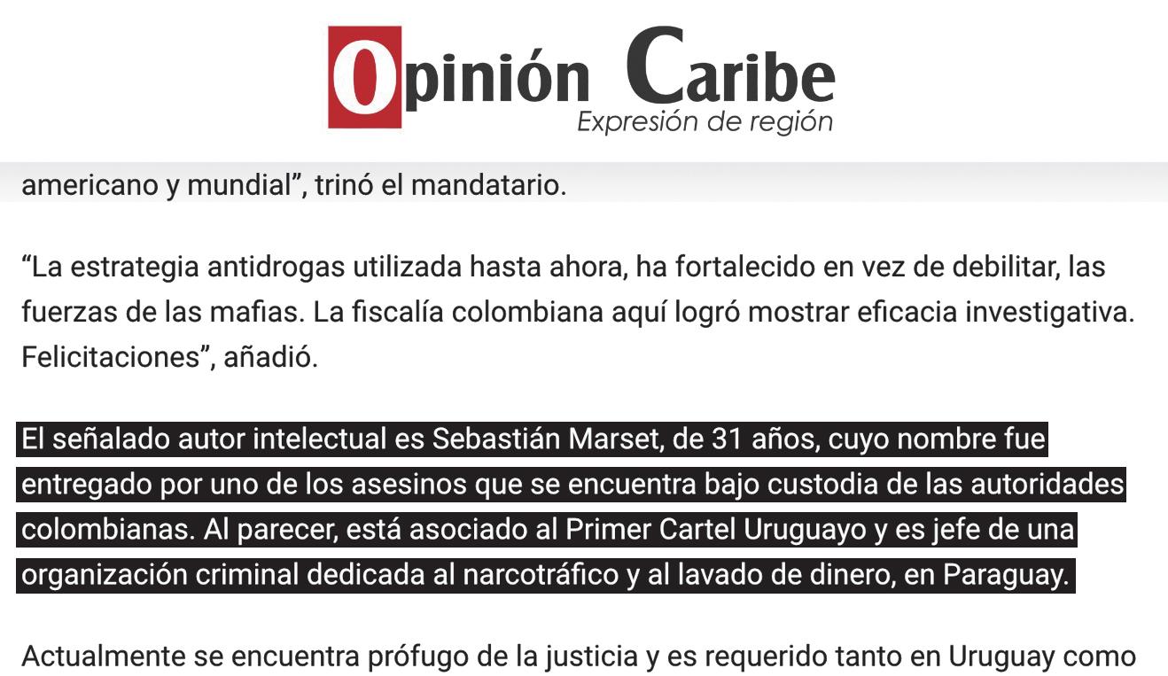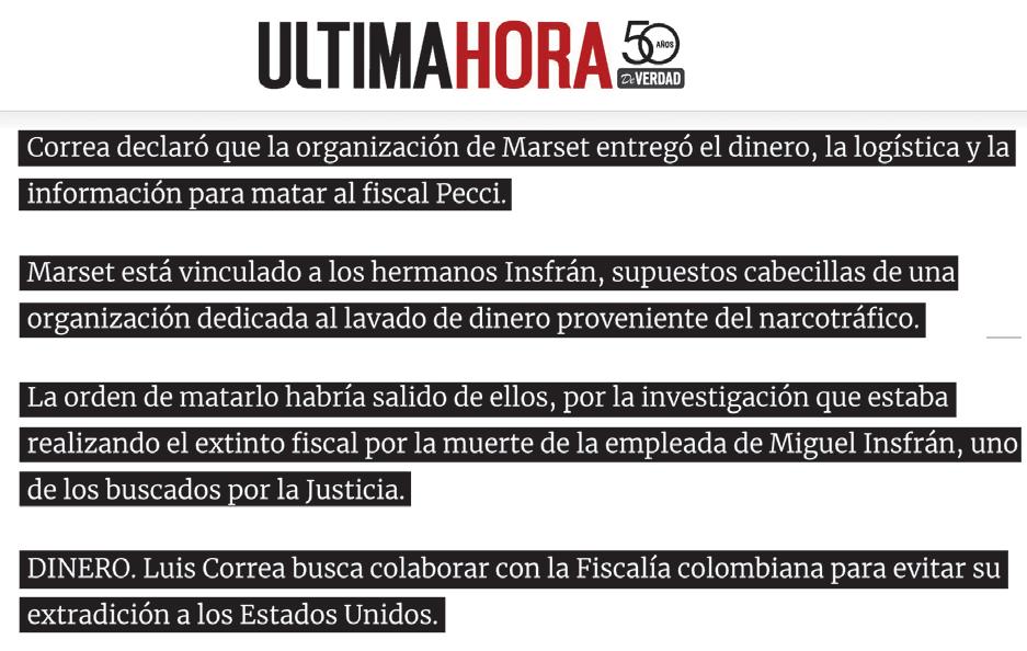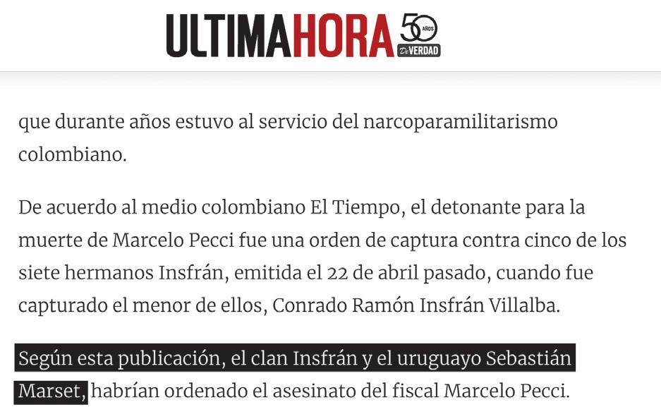 de extraditable, había declarado que el líder del clan Insfrán, Miguel Ángel Insfrán, alias Tío Rico y el uruguayo Sebastián Marset habían dado la orden para asesinar al exfiscal. Esta hipótesis como las demás que fueron sur -
