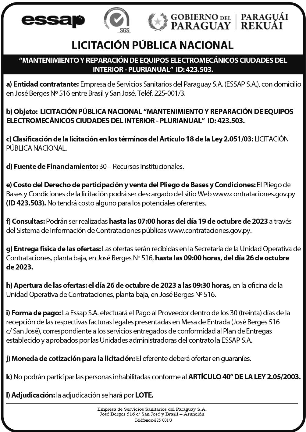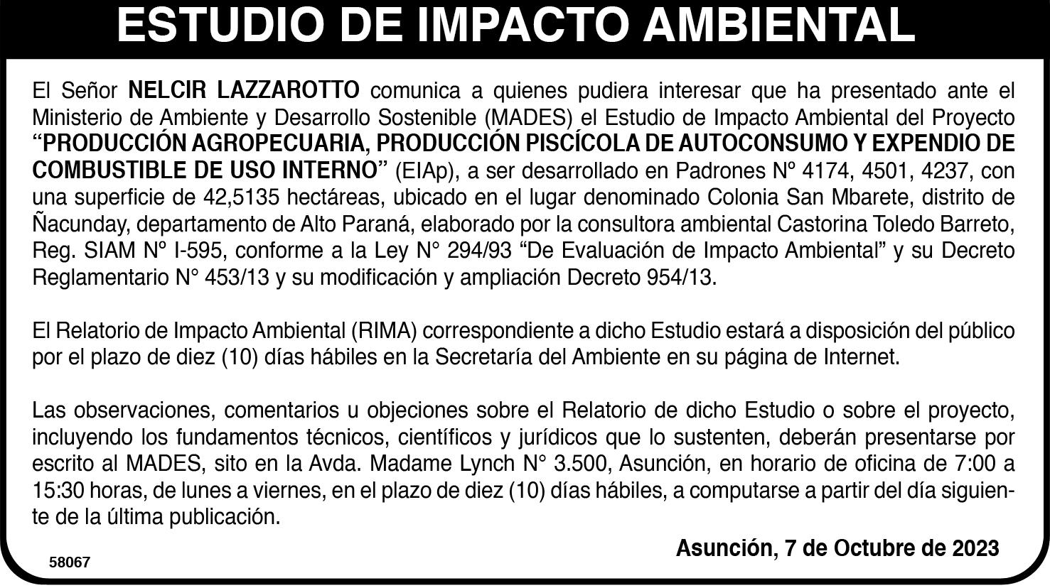 José Domingo Ocampos, 4 de octubre de 2023. ABG. PEDRO GENES B. Actuario Judicial.-57931/14/10.-